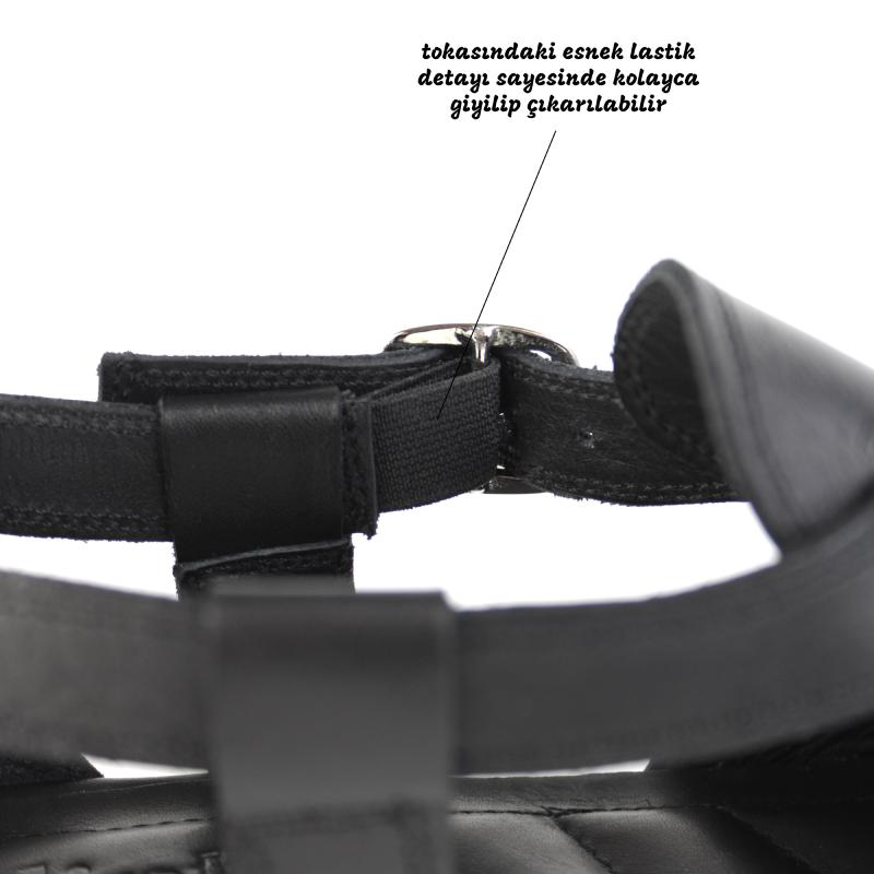 Siyah sandaletlerimizde kullandığımız hakiki deri, hem dayanıklılığı hem de konforu ile öne çıkar. Hakiki deri, doğal yapısı sayesinde ayakların nefes almasını sağlar ve terlemeyi minimuma indirir. Bu özellik, özellikle yaz aylarında sandaletlerimizin kullanımını daha konforlu hale getirir. Deri sandaletlerimiz, uzun süreli kullanımlarda bile ayaklarınızı rahat ettirir ve doğal bir destek sağlar.